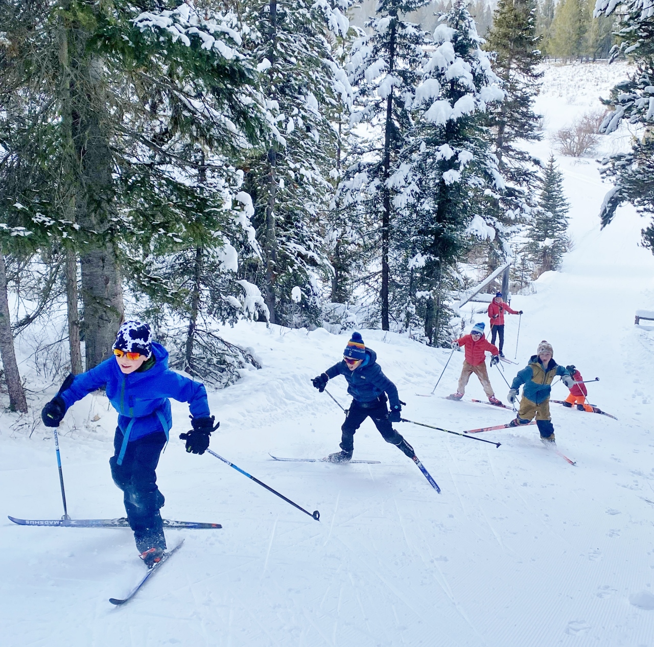 One of the highlights was the Moose Chase race, where many Teewinot kids jumped in and experienced the excitement of race day in such a fun and supportive environment. We also had an Olympic-style practice with different disciplines, pulled out the tandem skis for teamwork and spent lots of time exploring on skis. The focus has stayed on learning through games, movement, and fun—and it’s been really special to see how much more confident, capable, and comfortable the kids have become on their skis over the past few weeks.